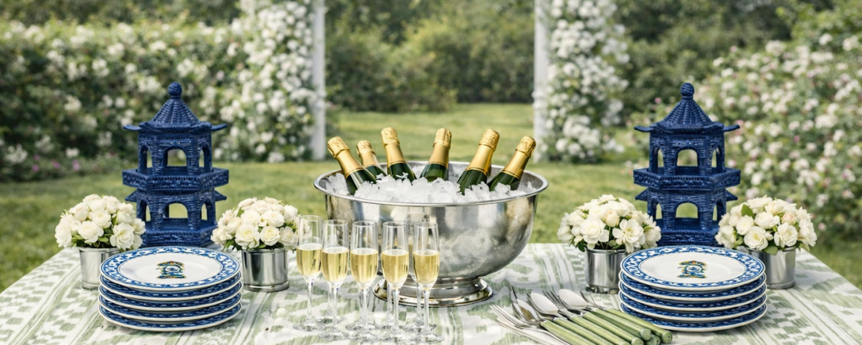 Pale Blue Scalloped Wicker Pagoda (3 Sizes)