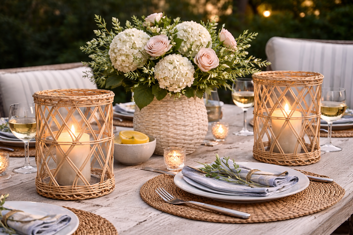 Moss Green Bamboo Wicker Hurricane