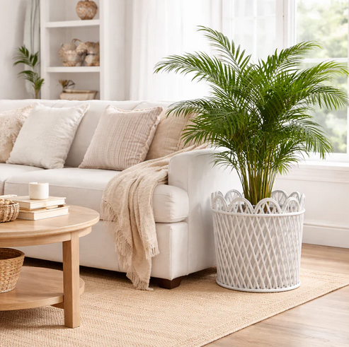 White Rattan Scalloped Floor Planter